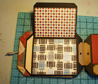 Here are photo’s of the mini album that goes inside the case as promised. Still needs the embellishments, but you can get an idea of the album. My delayed Bo Bunny order is scheduled to be delivered tomorrow and I will have those kits out ASAP.